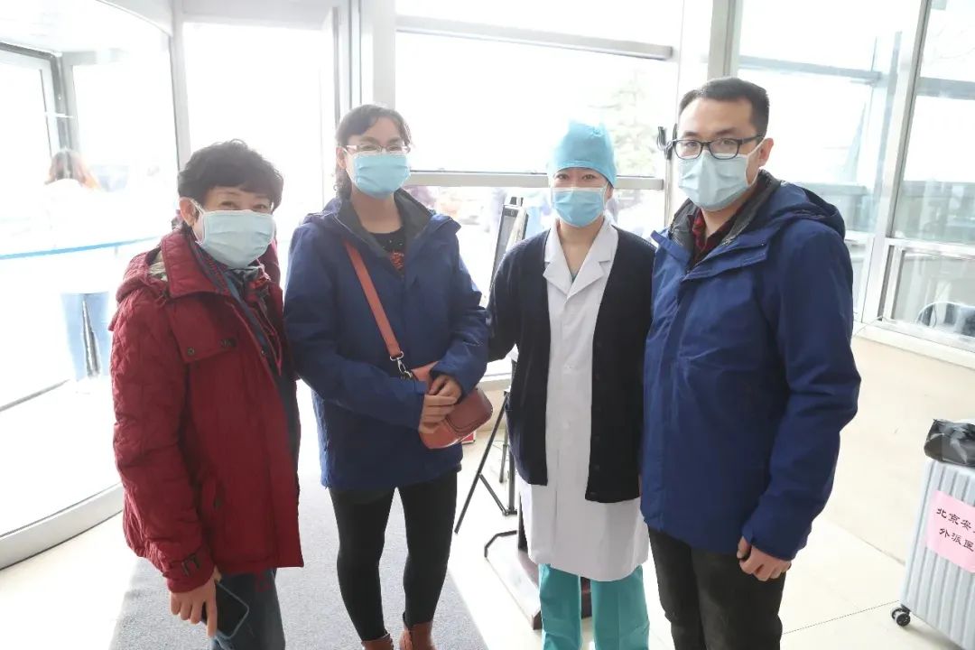 王洪振(右一)和李娟(左二)到达地坛医院