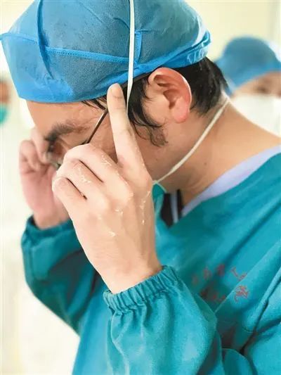 在海南省传染病医院负压隔离病房,大汗淋漓的医生刘明脱下厚重的防护服,防护手套的残留物仍沾在手上。黄晓慧 田佳 摄影报道