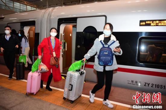 首趟“点对点、一站式”集中精准输送湖北务工人员G4315次专列抵达深圳北站。中新社记者 陈文 摄
