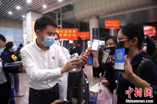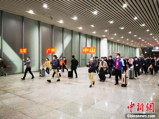 湖北务工人员抵达广州南站。中新社记者 姬东 摄