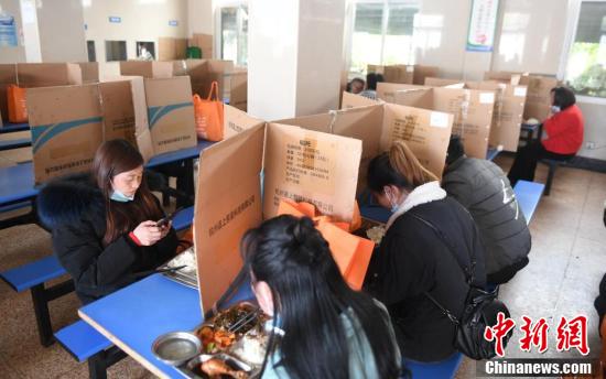 多位复工人员分散用餐。 中新社记者 王刚 摄
