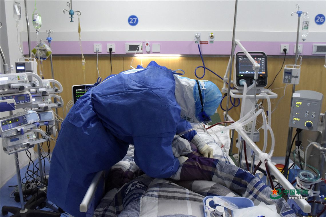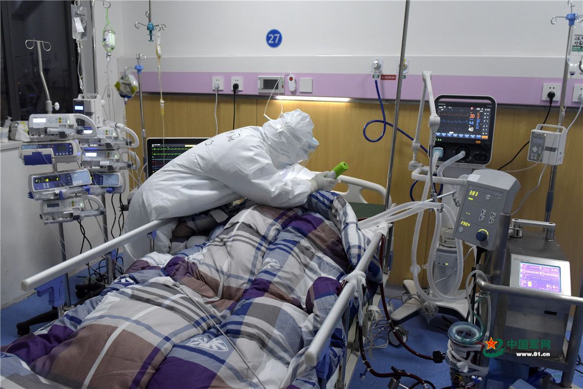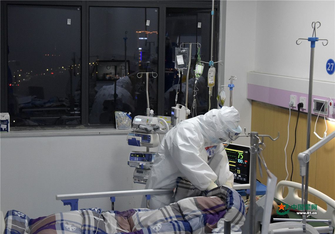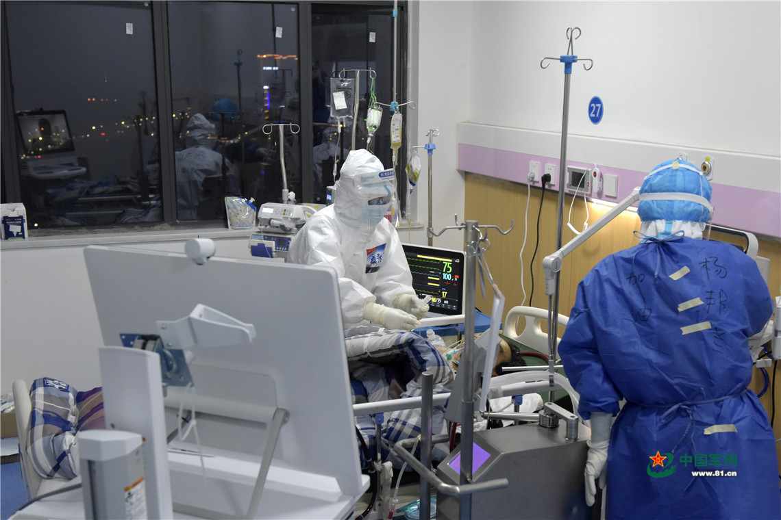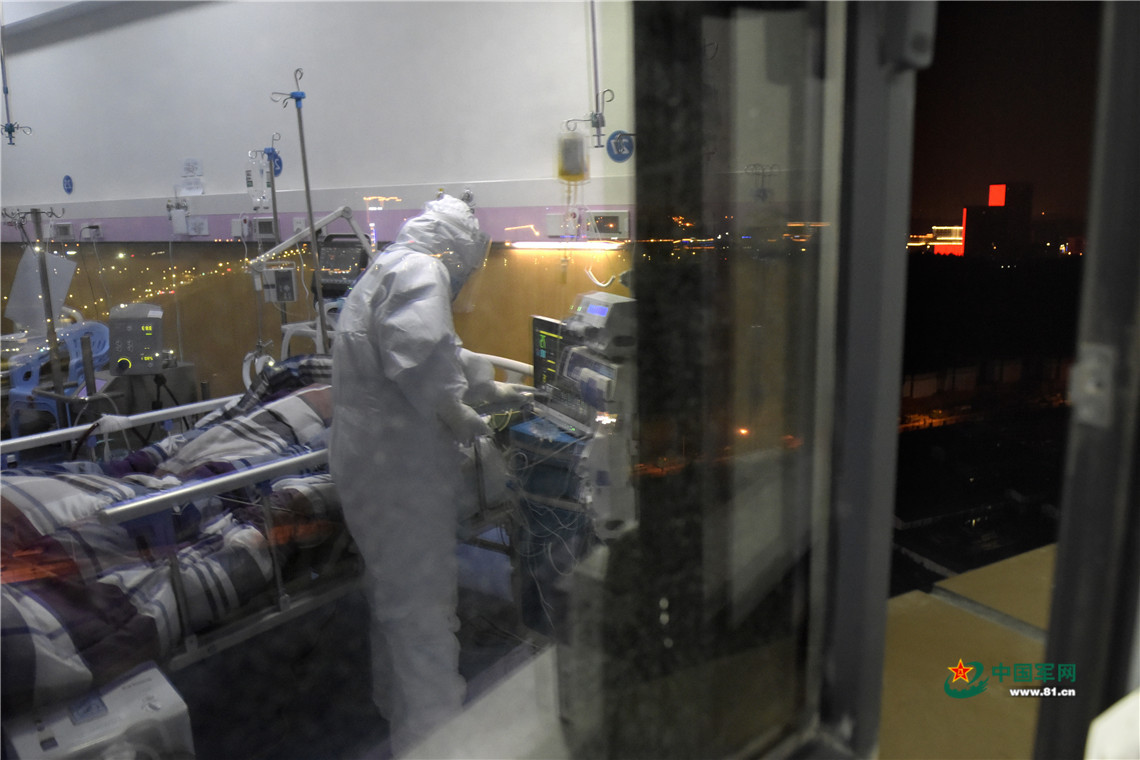 深夜,医护人员一直守护在危重症患者病床旁。中国军网记者范显海 摄