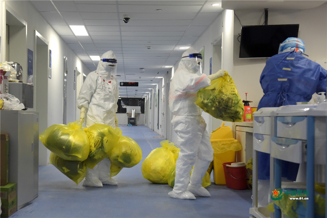 医护人员清运医疗垃圾。中国军网记者范显海 摄
