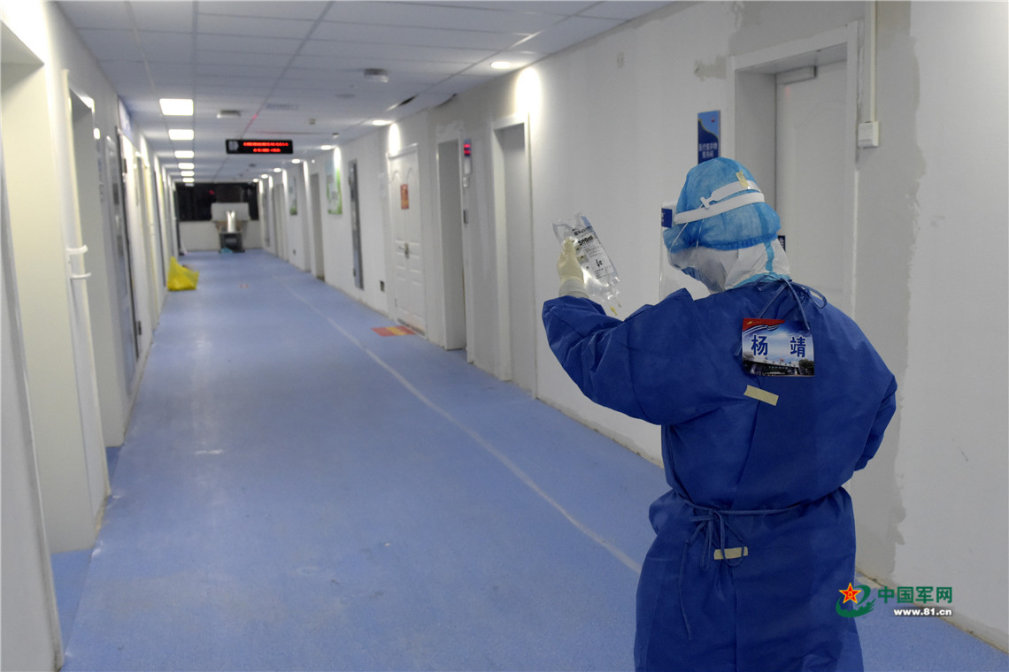 医护人员准备为患者更换注射液体。中国军网记者范显海 摄