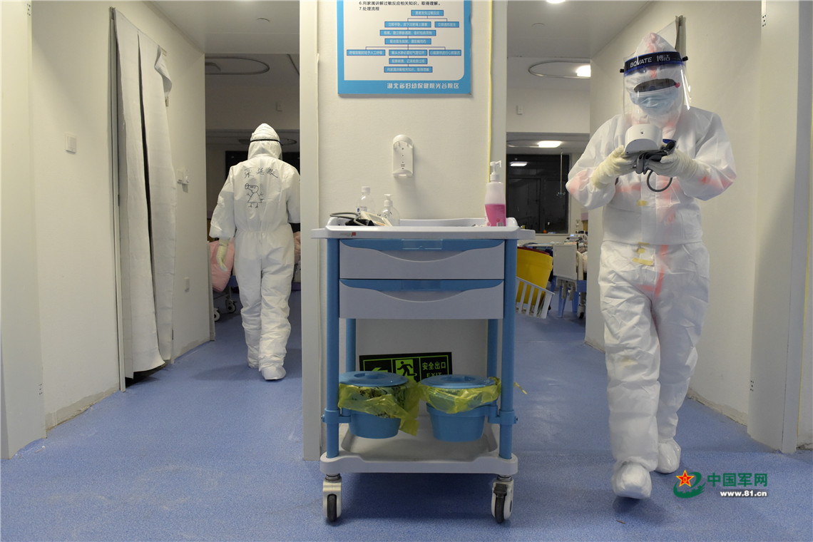 医护人员在各病房间忙碌地穿梭。中国军网记者范显海 摄