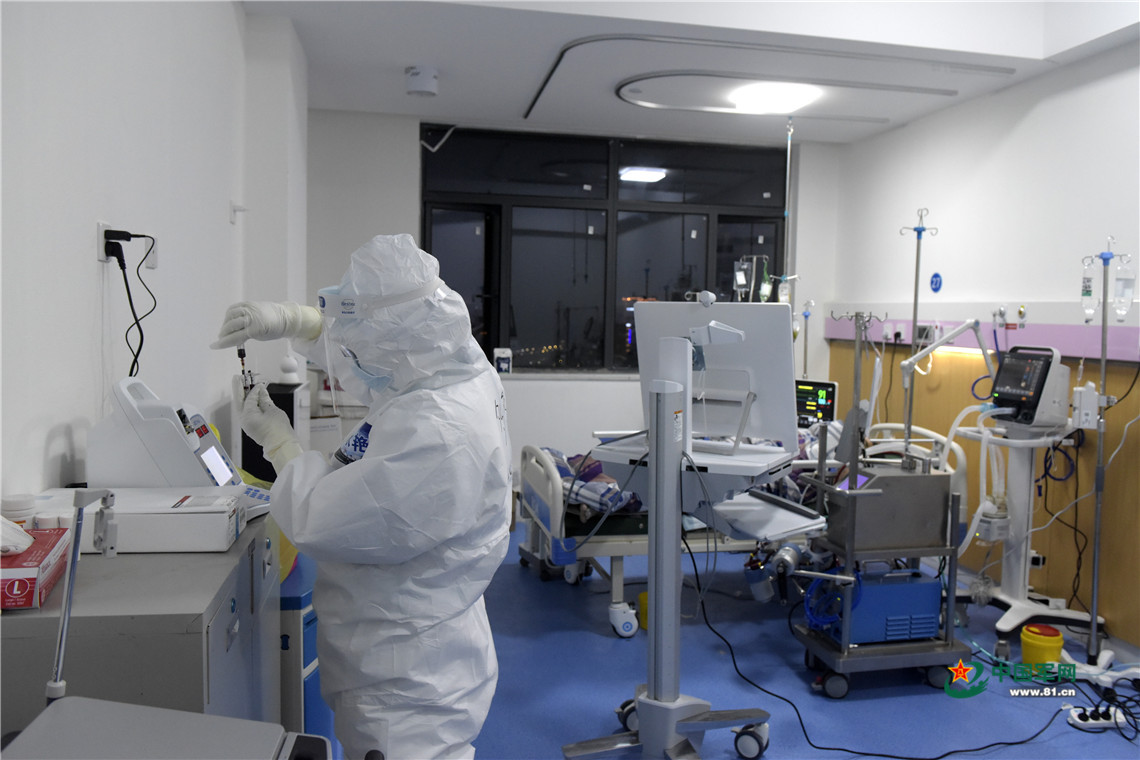 在重症监护室,医护人员不分昼夜,全力抢救患者生命。中国军网记者范显海 摄