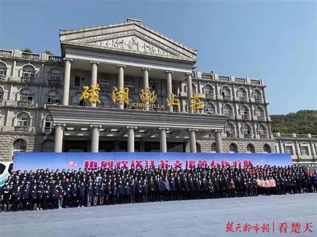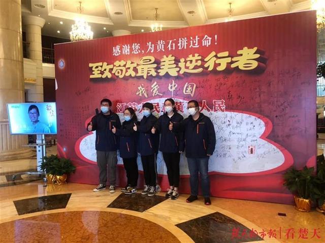 楚天都市报3月20日讯(记者梁传松 通讯员王剑)“黄石人民永远感谢你们”。3月20日上午10点10分,在黄石磁湖山庄主楼门前广场,黄石市为归家的江苏援黄医疗队员送行,黄石市委副书记、市长吴锦代表黄石市委、市政府郑重承诺:黄石的所有景区及星级宾馆,对江苏援黄医疗队所有队员及其家人终身免门票和住宿费。