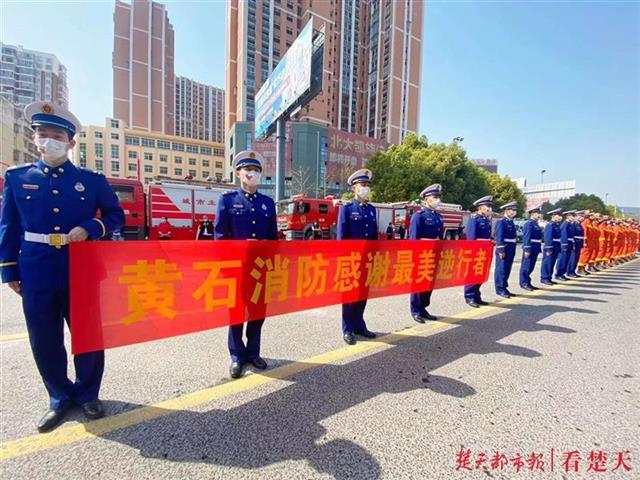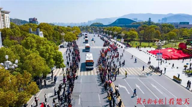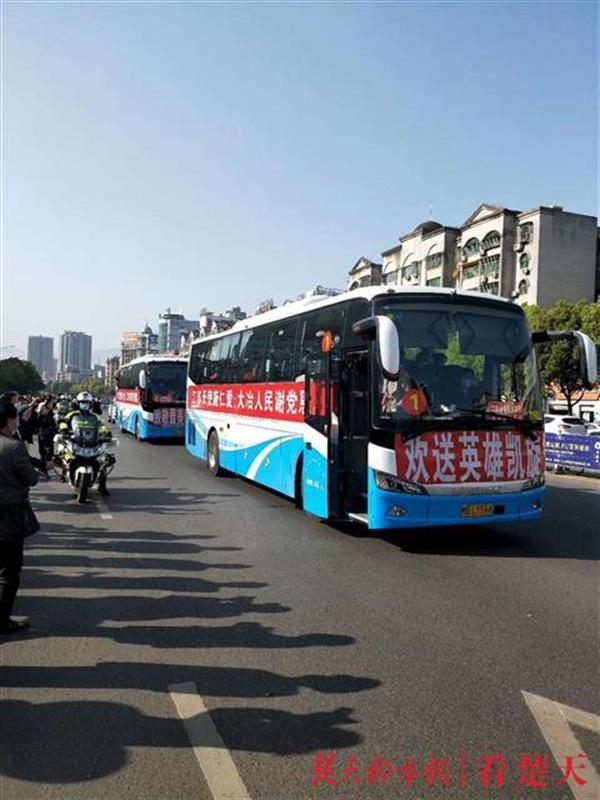 楚天都市报3月20日讯(记者梁传松 通讯员王剑 赵武举)今日上午10时40分,6辆大巴车载着江苏首批支援黄石医疗队362名队员踏上归途,没途警车护送,交警列队敬礼,驾驶员鸣笛对医疗队致敬。车队所到之处,黄石市民自发在沿途挥手道别。