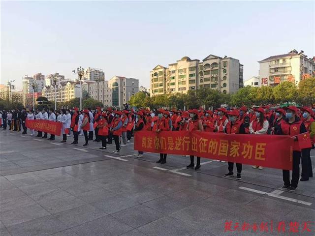 黄石市民自发组织队伍,为江苏援黄医疗队送行,沿路,市民们高喊,“感谢江苏,向你致敬”为江苏援黄医疗队送上诚挚的祝福。