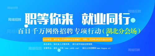 荆楚网客户端-荆楚网消息(记者 徐蕾 通讯员 徐丹)根据国家人社部统一部署和安排,湖北省正式上线和启动“百日千万网络招聘专项行动”湖北分会场专栏(http://www.jobhb.com/home/zt/hbdzp2020.html),并同步开启了2020年“我选湖北·春回荆楚”高校毕业生大型网络招聘活动。