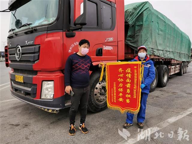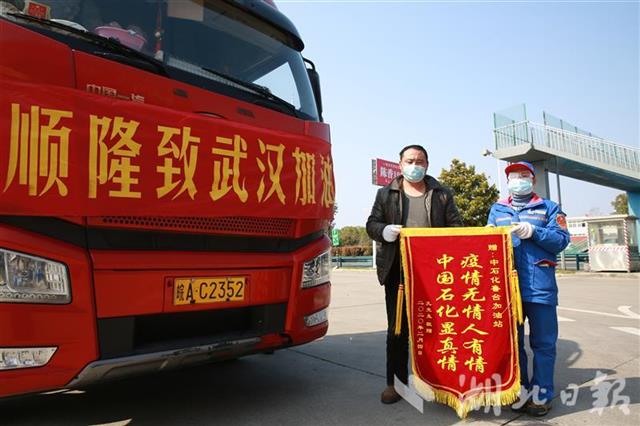 2月9日,孔师傅再次到武汉送防疫物资,给中国石化湖北鲁台服务区加油站送上了一面锦旗,上写“疫情无情人有情,中国石化显真情”。