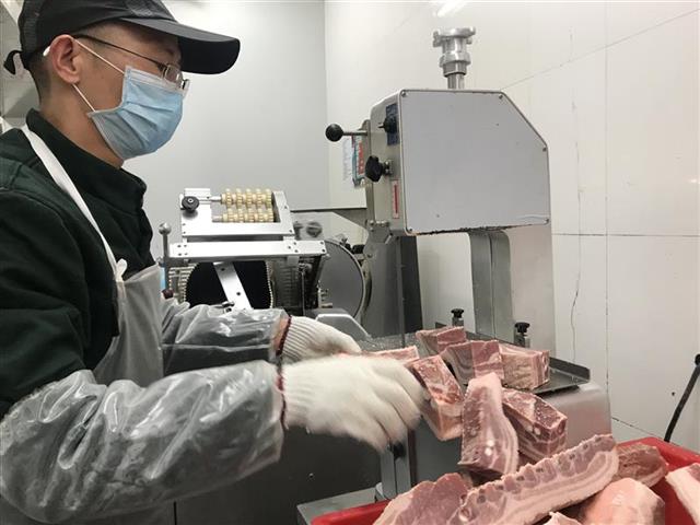 增加设备、增加人手。唐礼虹说,“新增了18台锯骨机,并临时聘请了8名有经验的锯骨师。他们速度很快,一小时可以分割1吨肉。”