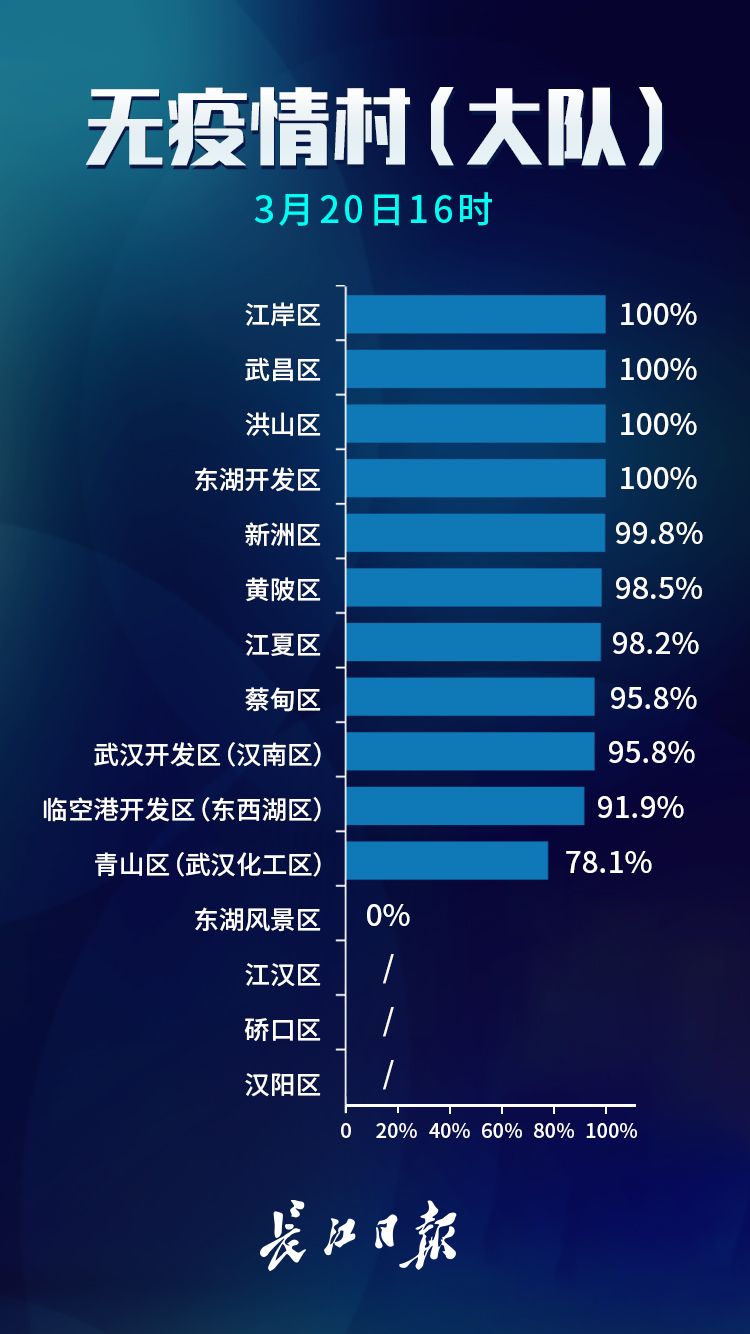 截至3月20日16时,全市无疫情小区累计数量6302个,占比88.7%;无疫情社区累计数量775个,占比55.1%;无疫情村(大队)累计数量1900个,占比97.8%。