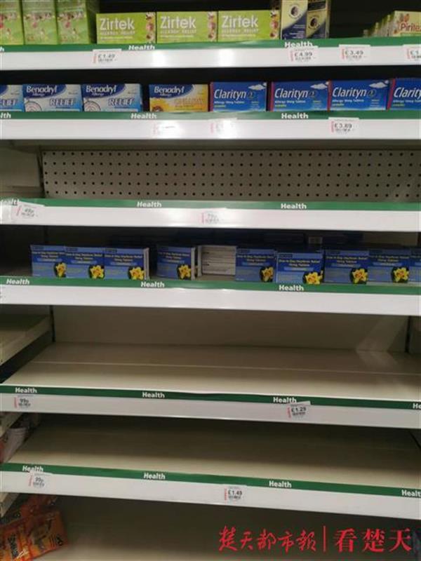 尹鹤婷的学校在英国东北部的米德尔斯堡,相对于伦敦和其他大城市,此处人口较少,目前还没有官方消息报道确诊病例。“但随着英国疫情不断蔓延,超市里的卫生纸、洗手液、消毒水、常用药等都被抢购得差不多了。”尹鹤婷说。