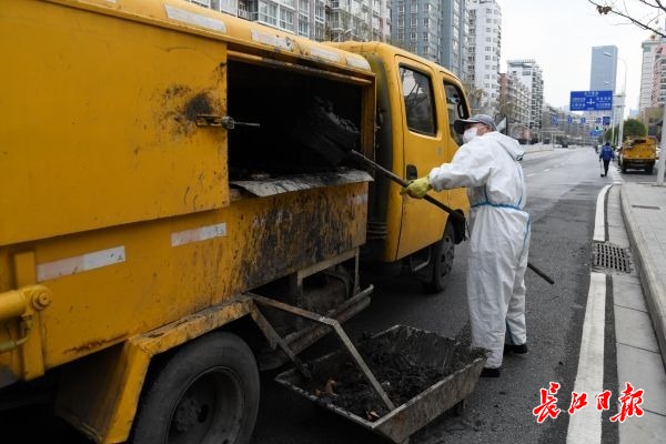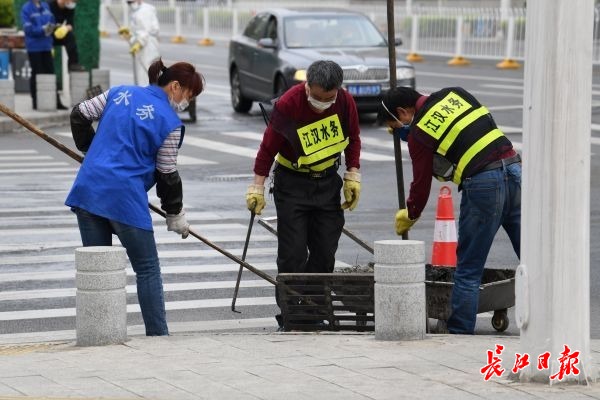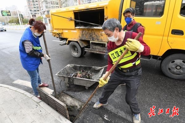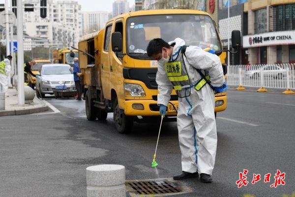 长江网3月21日讯 今天,江汉区水务局疏通三班班长周思文带领全班工作人员和多台车辆沿着香港路对下水管道进行清淤,并且对管道井盖等设施进行消毒喷洒。多雨季节即将到来,水务职工保持城市下水管道畅通,更利于及时排渍。(记者詹松 摄影报道)