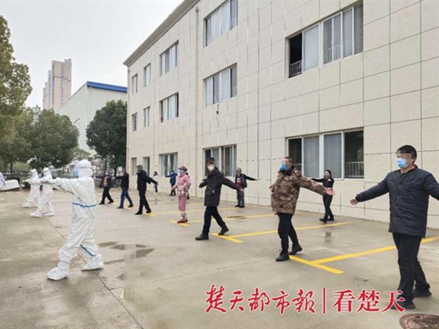 “康复期间,要保证大家吃的好,住的好,心情好。”径河街东光宾馆隔离点的现场负责人彭艳海介绍到,康复点的工作人员在每天上午10点,都会带领康复人员在广场上跳广场舞,“武汉人乐观,只要有音乐大家就会跟着跳起来,心情也会好起来。”