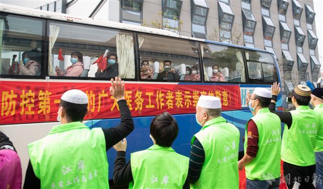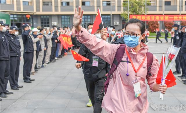 3月21日,武汉市足协球员公寓,市民欢送甘肃医疗队。