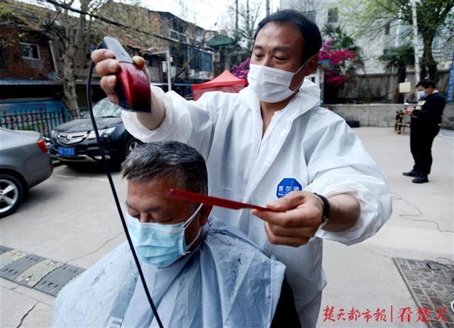 “肖师傅,谢谢你!”“多谢平时街坊们关照!这段时间大家不能出门,我上门为大家服务。”3月21日中午,在武汉市江岸区塘新社区未来家园小区楼下,辖区理发店老板肖丑发为居民义剪。
