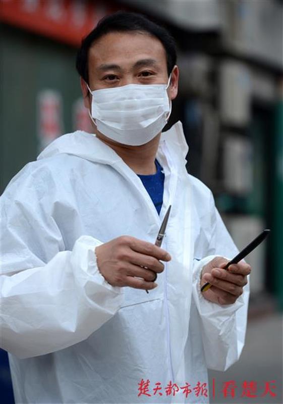 49岁的肖师傅说,他从汉川来汉打工30年。在社区街坊邻居们的帮衬下,他的理发店扎根此地20多年。现在特殊时期,他为居民帮点小忙,是应该的。