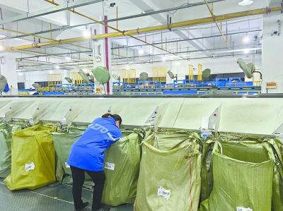 快递分拨中心,工作人员正在整理包裹。长江日报记者赵歆 摄