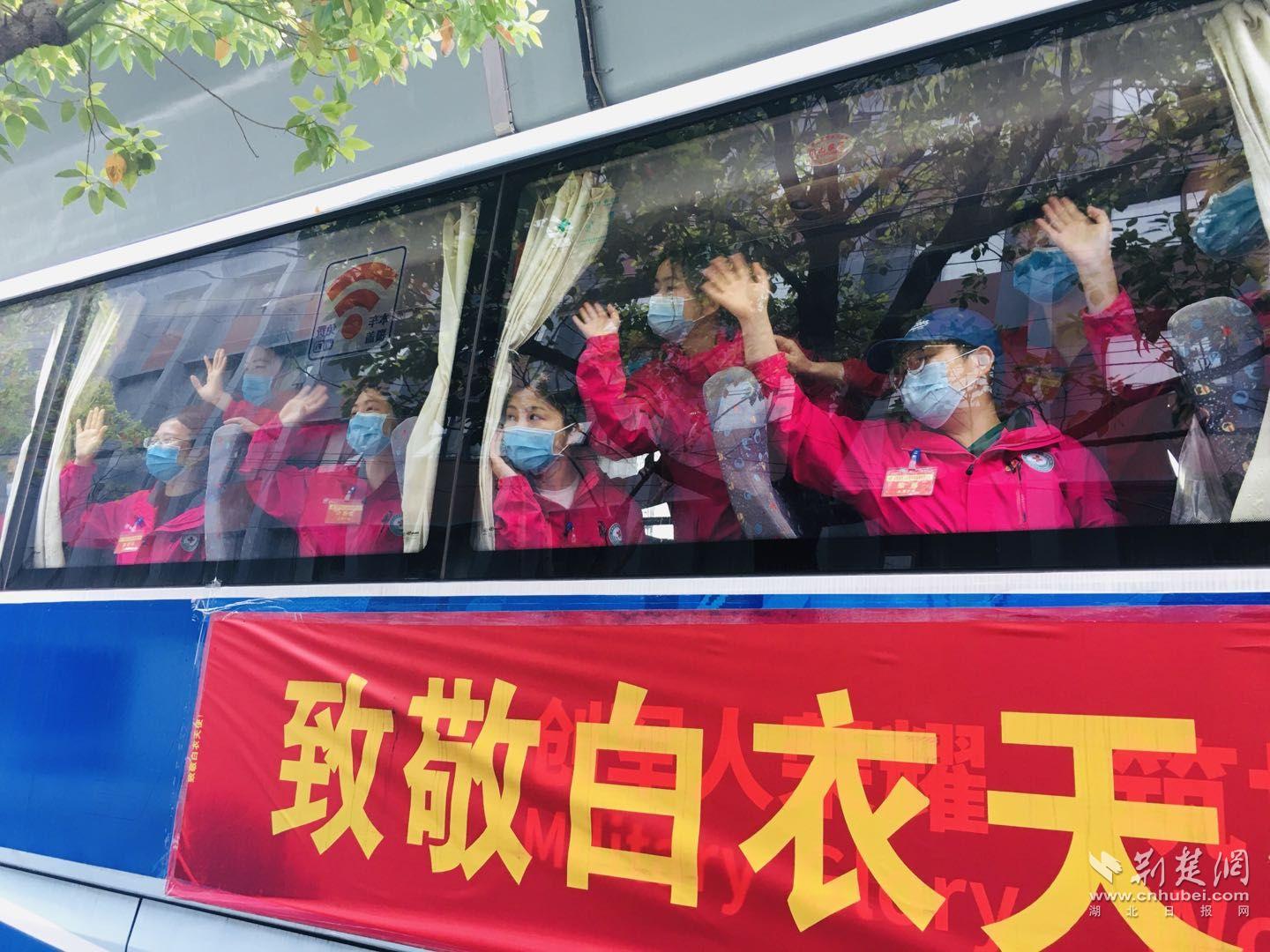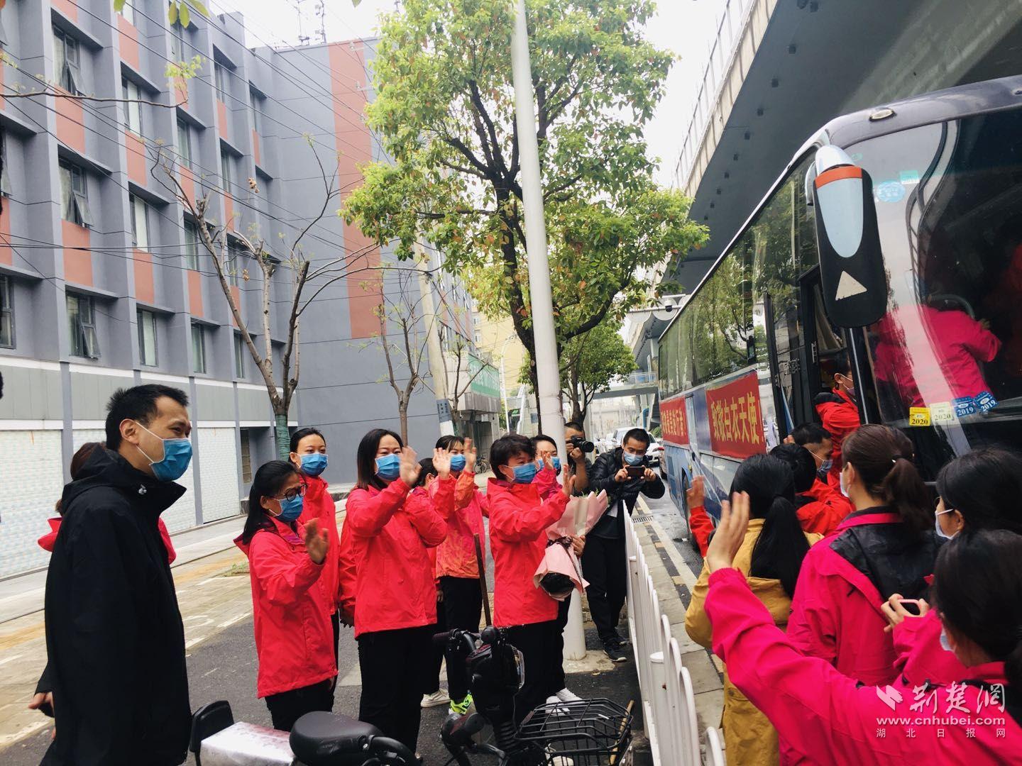 白衣天使们挥手道别,齐喊“武汉加油” !记者邱玲鹏 摄