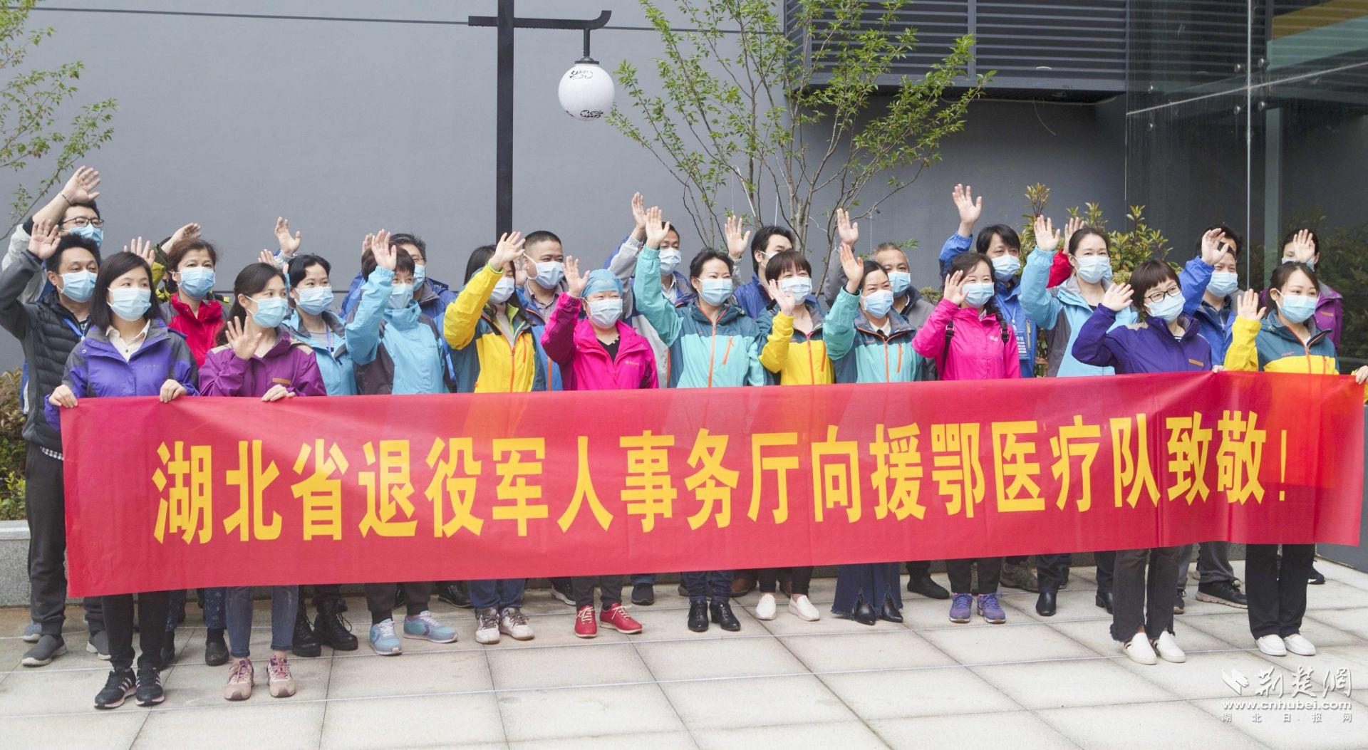 在撤离之际,退役军人事务部专门发来慰问信,对援鄂医疗队在抗击疫情期间的优异表现给予充分肯定,向他们致以诚挚问候和崇高敬意,并希望他们将特别能吃苦、特别能战斗的精神带回到各自工作岗位,把优抚对象服务好、保障好,在推动让广大退役军人成为全社会尊重的人、让军人成为全社会尊崇的职业的宏大事业中再立新功。