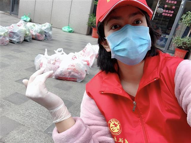 不只是在线上做志愿者。2月23日,古丽迪娜得知武汉招募志愿者为小区居民提供食品药品代购服务后,立刻报了名。