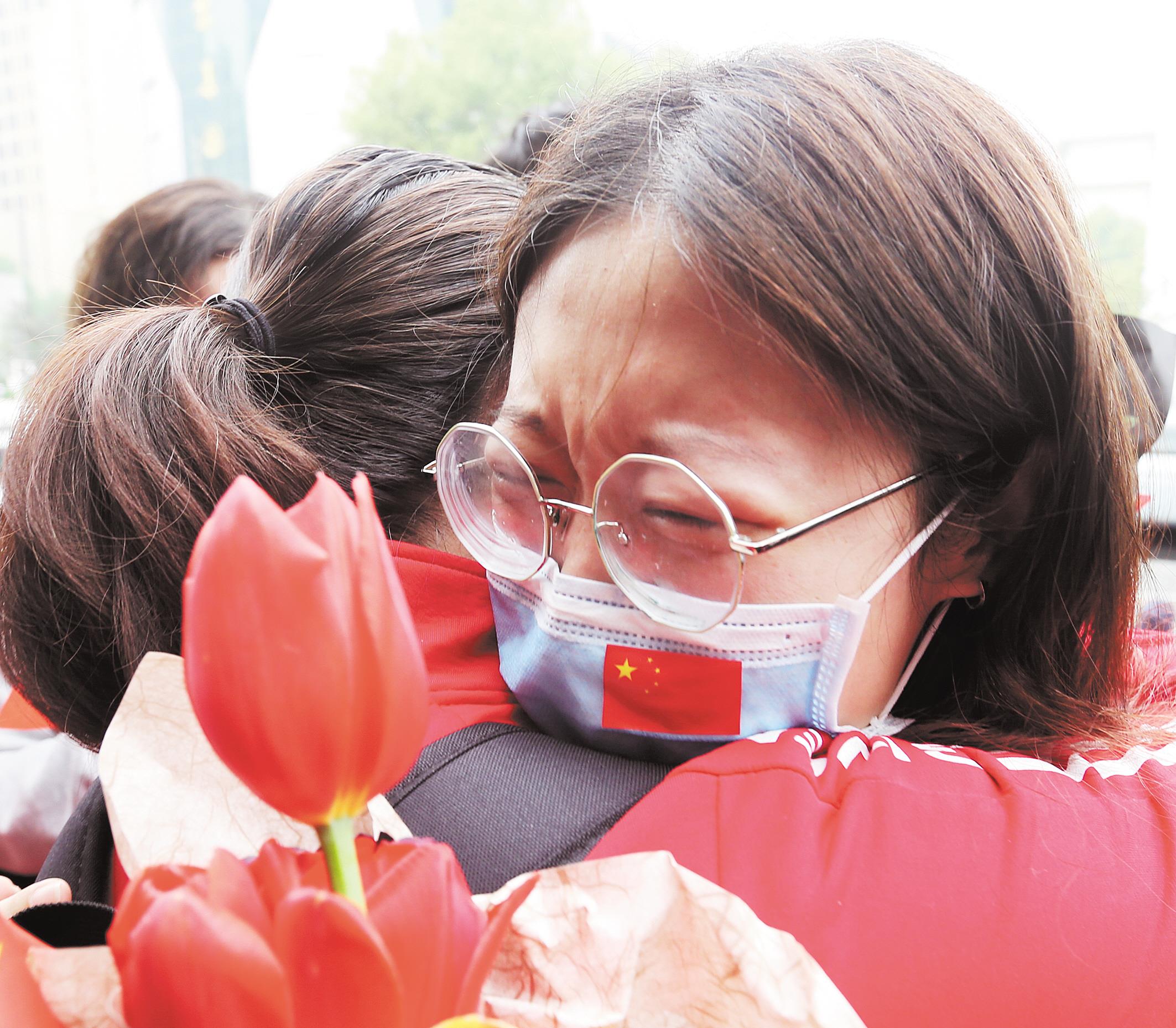 3月22日,上海援鄂医护人员与一起抗疫的武汉战友深情拥抱,依依惜别。当日,上海市第三批援鄂医疗队148名医护人员圆满完成医疗救治工作任务,从武汉返沪。