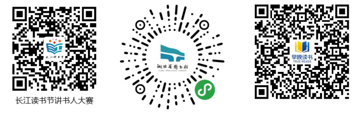 有兴趣的读者可识别下方二维码报名,识别湖北省图书馆小程序在线阅读,湖北选手亦可扫码领取早晚读书免费季卡,跟随名人大咖对书籍的解读,讲出你的一分钟风采!