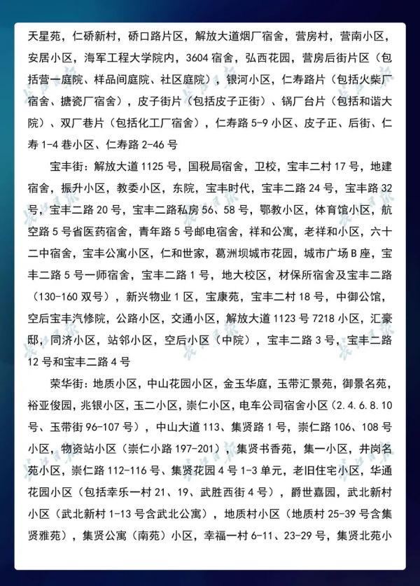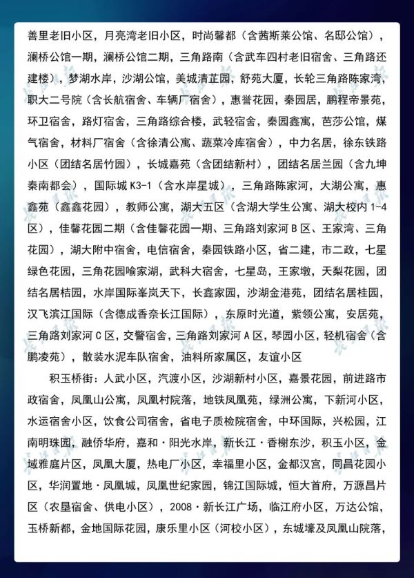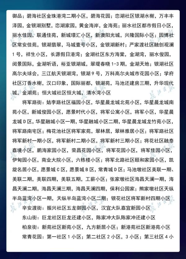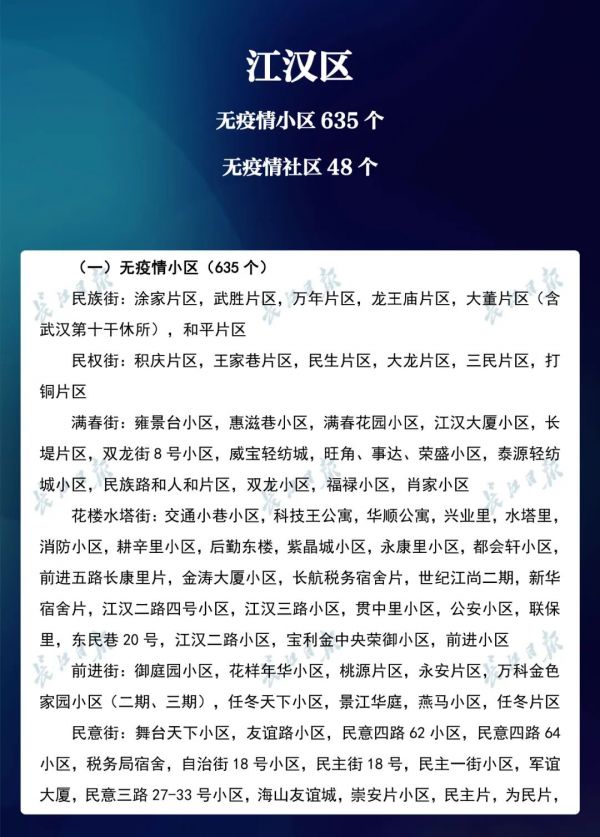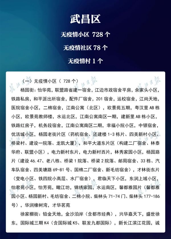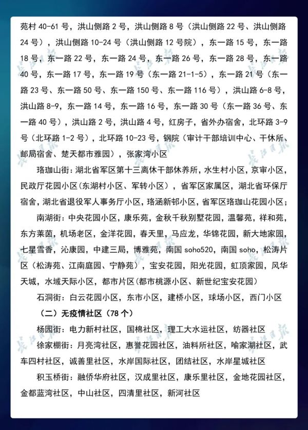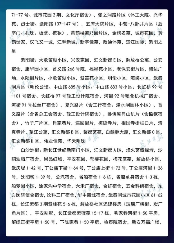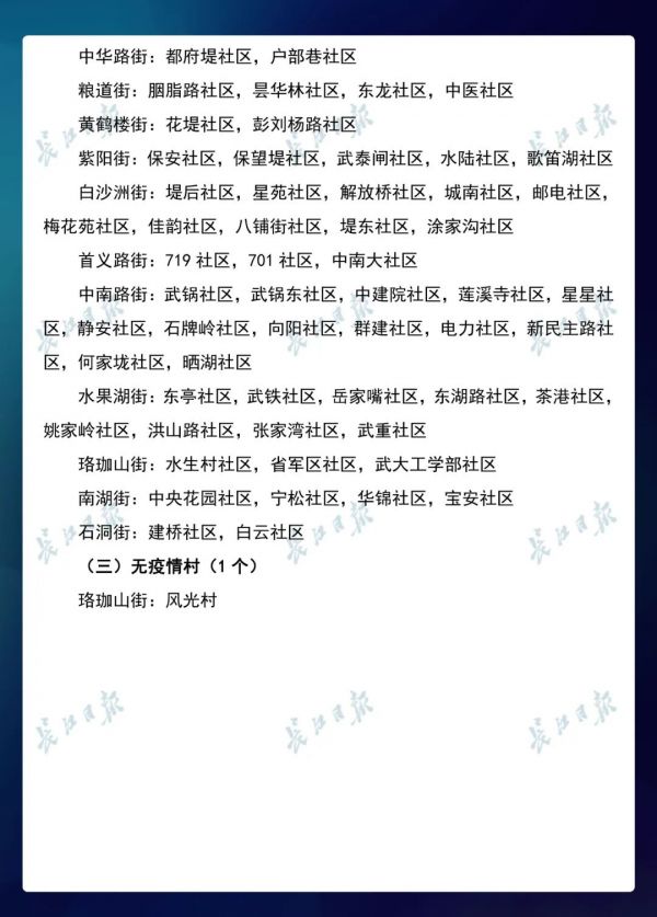 3月23日,武汉市新冠肺炎疫情防控指挥部社区疫情防控组公布全市第七次评定的无疫情小区、社区、村(大队)名单,命名第三批8个无疫情街道(乡镇)。其中,青山区白玉山街成为全市中心城区命名的首个无疫情街道。