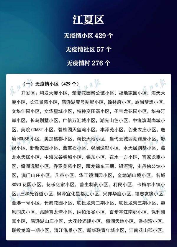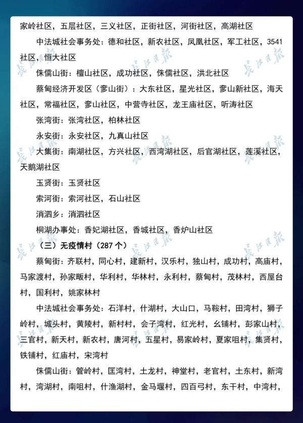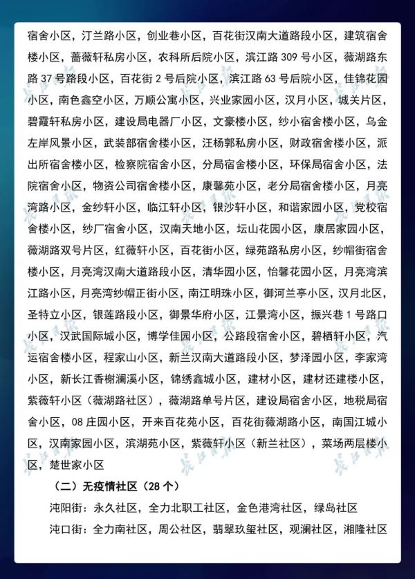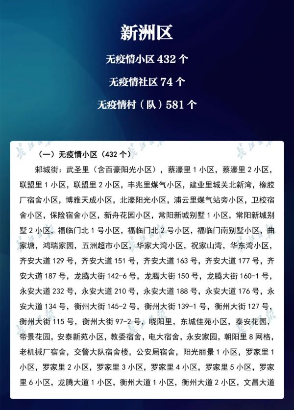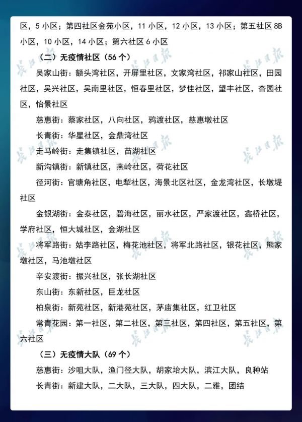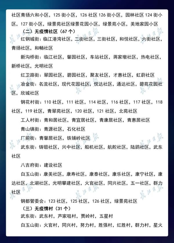 经各区第七次评定,全市无疫情小区新增434个,无疫情社区新增204个,无疫情村(大队)新增27个。同时因疫情变化核查处理,少数无疫情小区、社区、村(大队)被取消或暂停。