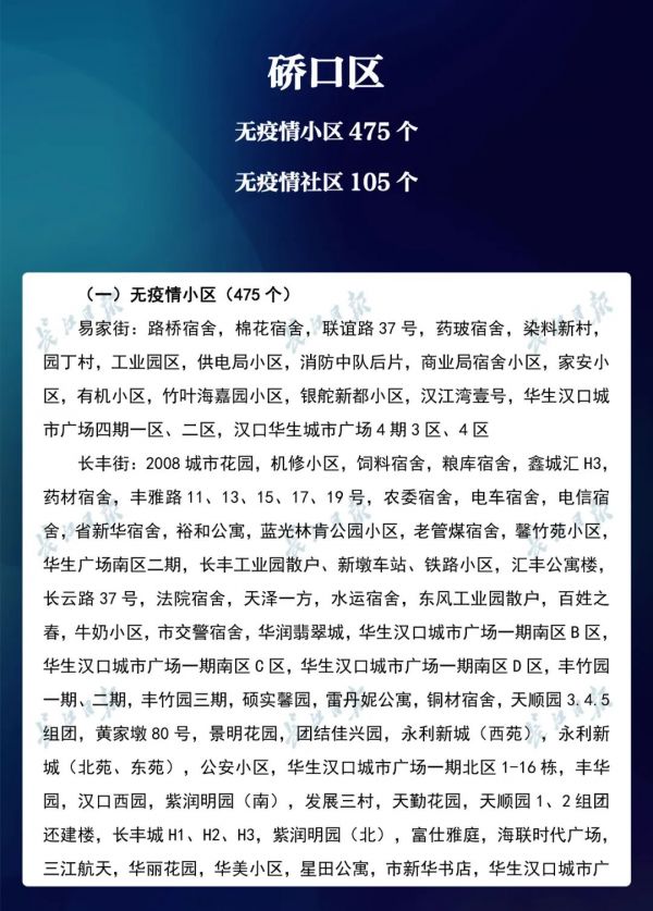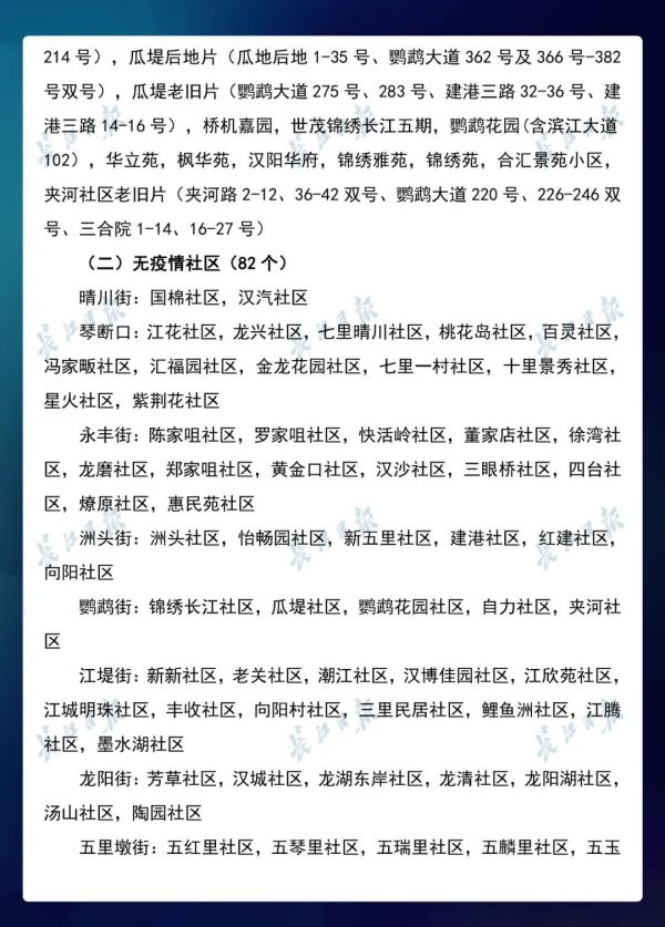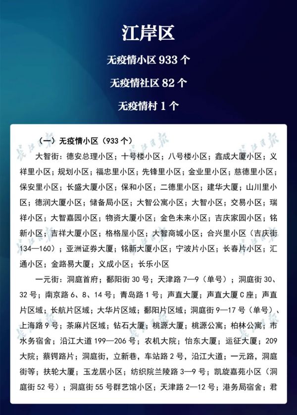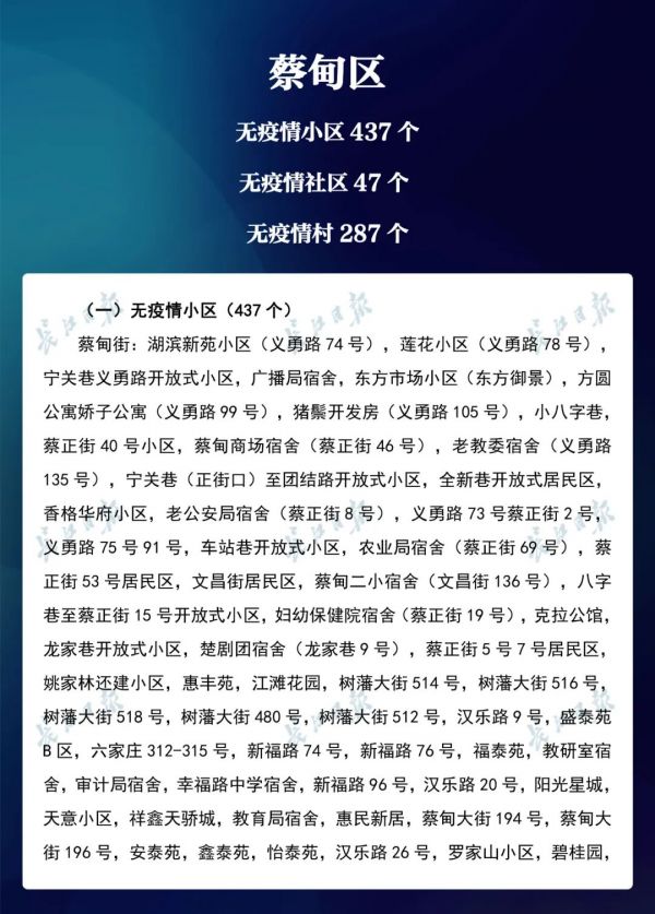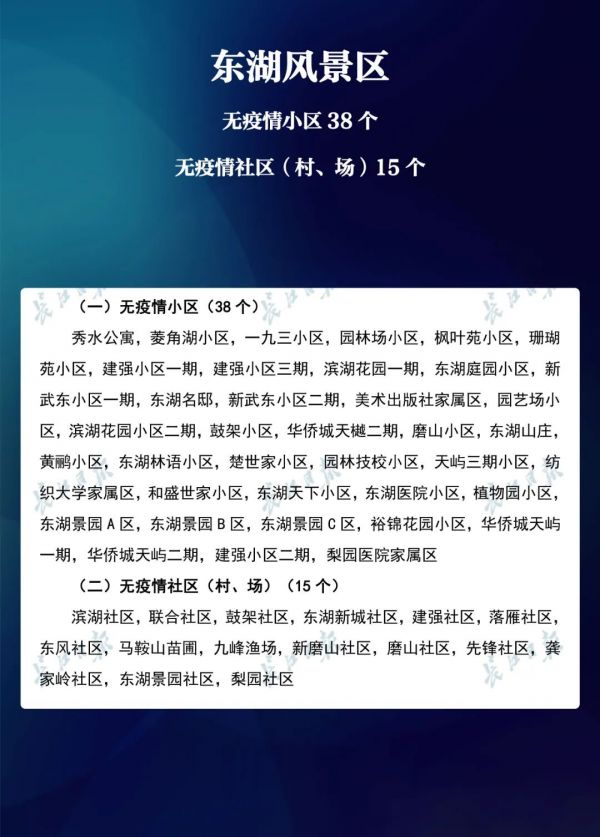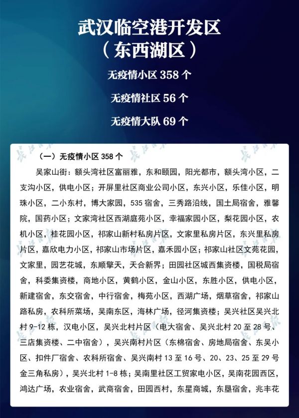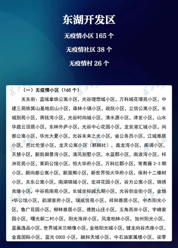 经各区第七次评定,全市无疫情小区新增434个,无疫情社区新增204个,无疫情村(大队)新增27个。同时因疫情变化核查处理,少数无疫情小区、社区、村(大队)被取消或暂停。