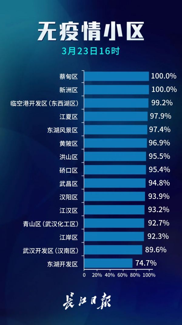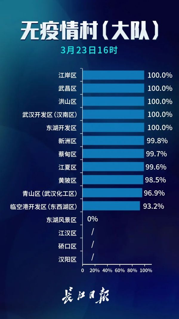 截至3月23日16时,全市无疫情小区累计数量6723个,占比94.7%;无疫情社区累计数量974个,占比69.3%;无疫情村(大队)累计数量1924个,占比99.0%。全市已命名无疫情街道(乡镇)29个,占比16.8%;第四批进入公示环节的无疫情街道(乡镇)10个;新申报的无疫情街道(乡镇)14个。