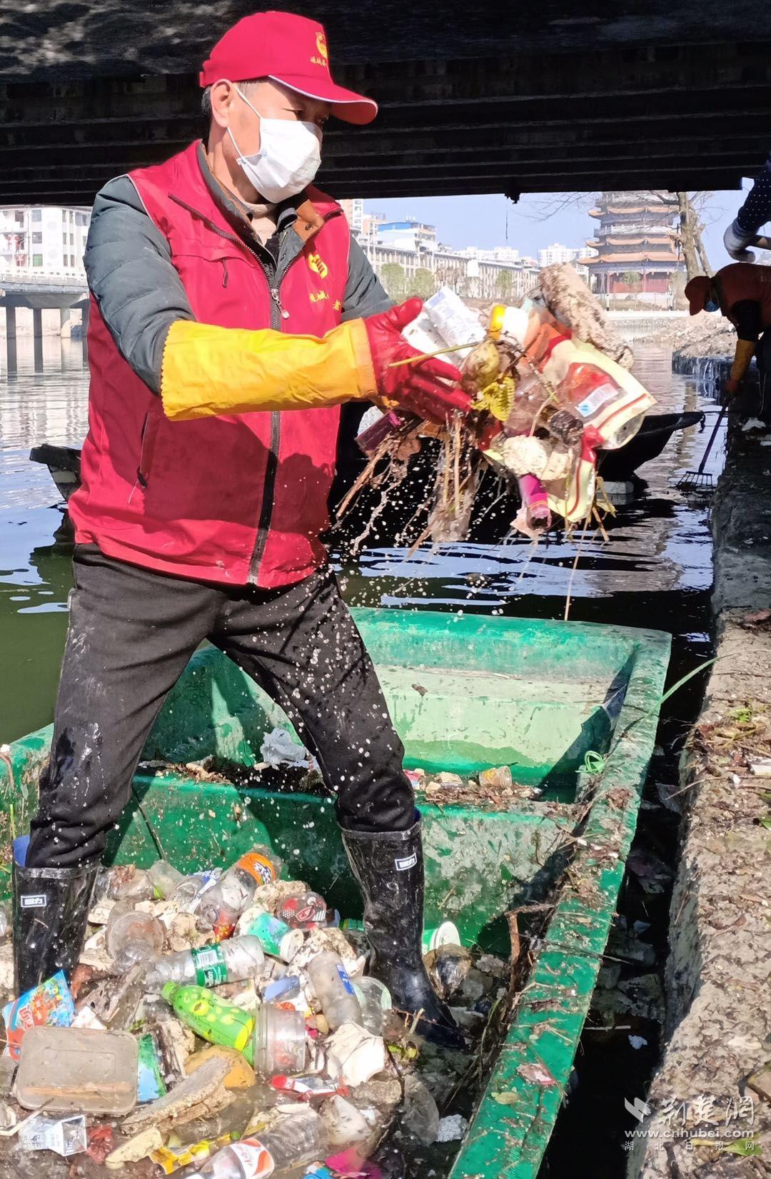 近期,随着通城县疫情防控形势持续向好,孔庆平带领40多名志愿者全部返回公益岗位,在城区隽水河进行漂浮物清理、打捞,清运30多吨漂浮垃圾,数十公里水面焕然一新。