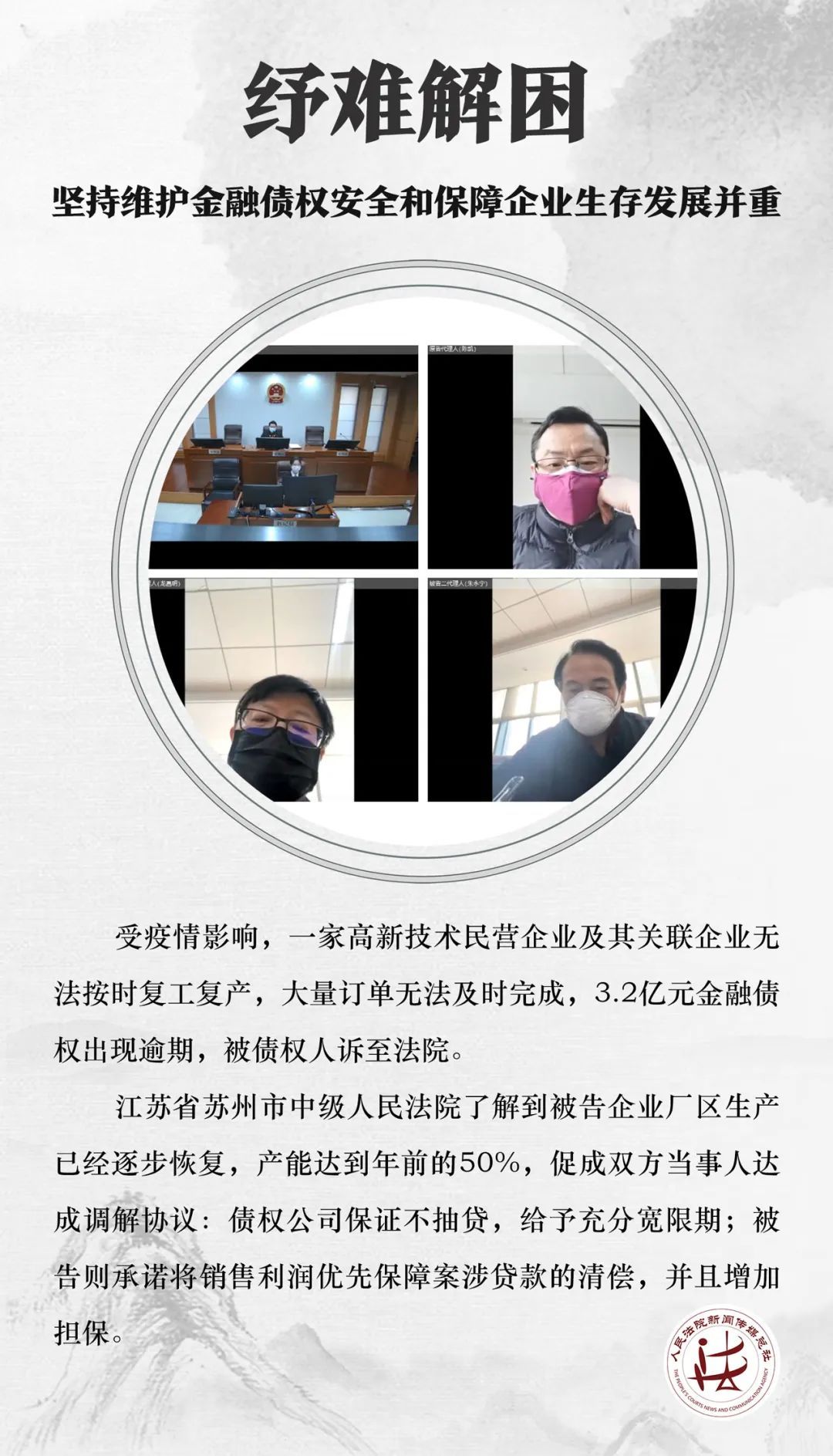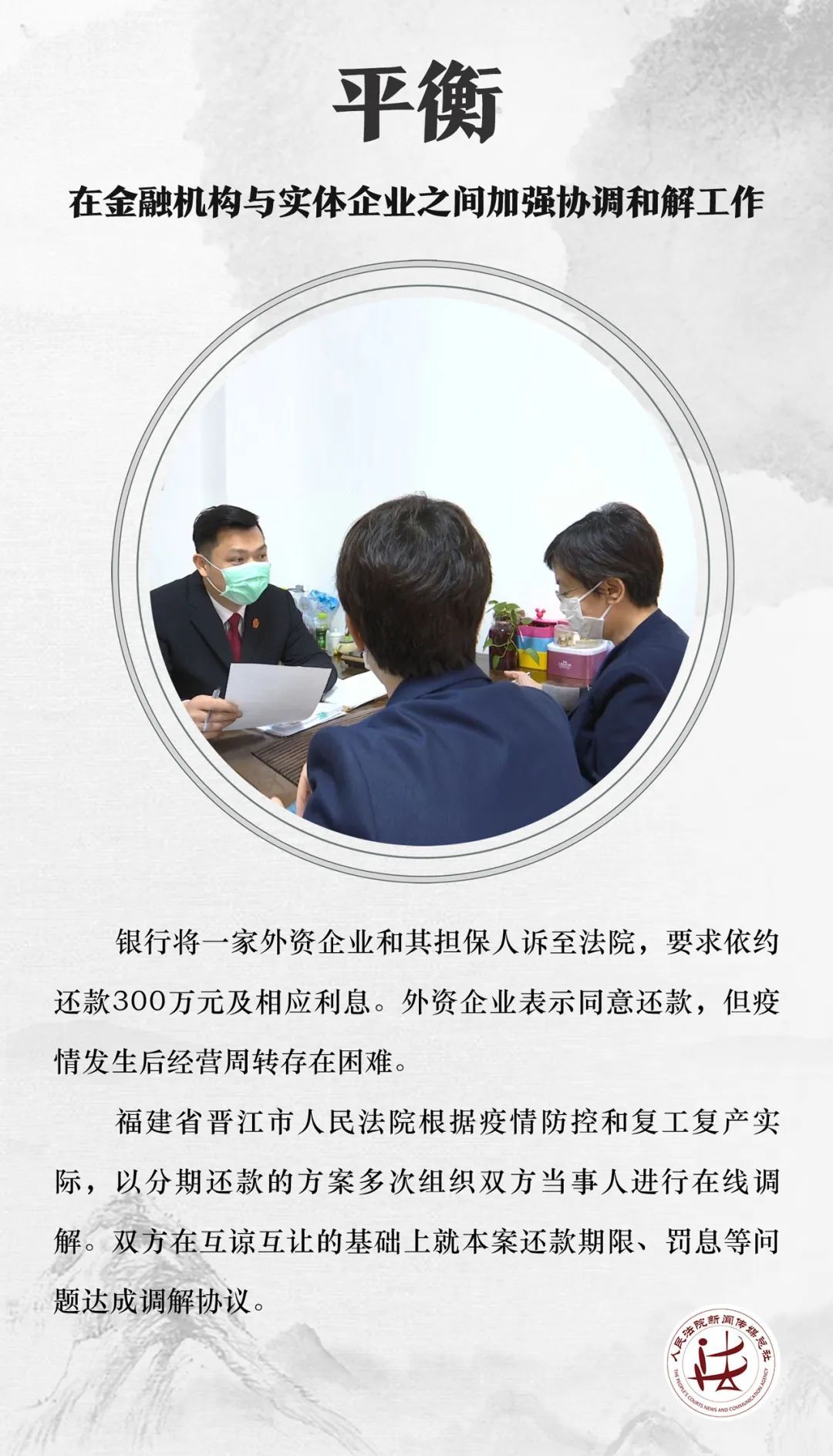 实地走访、协调各方、在线调解……人民法院综合运用多种方式依法及时化解合同纠纷和企业债务纠纷