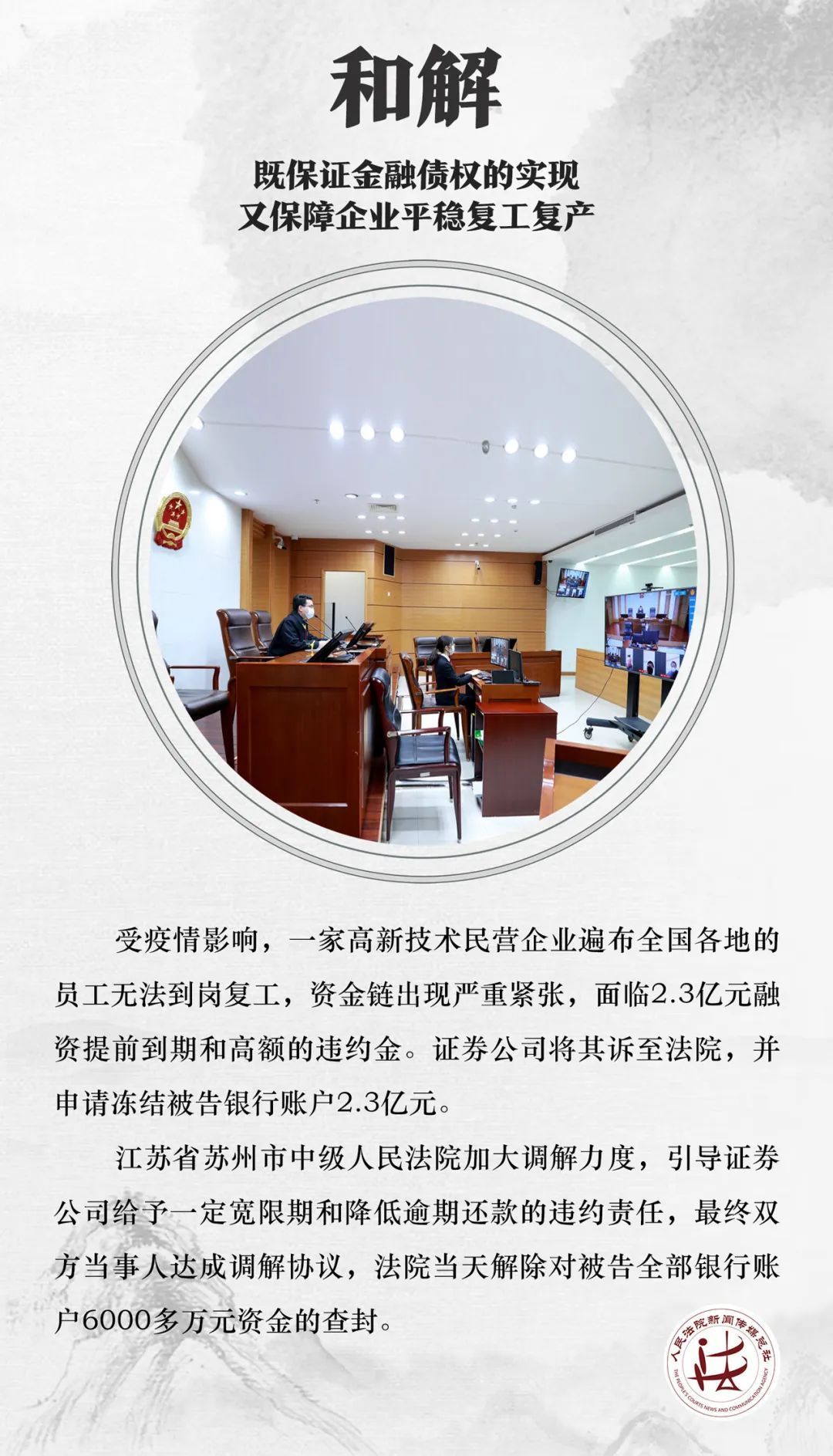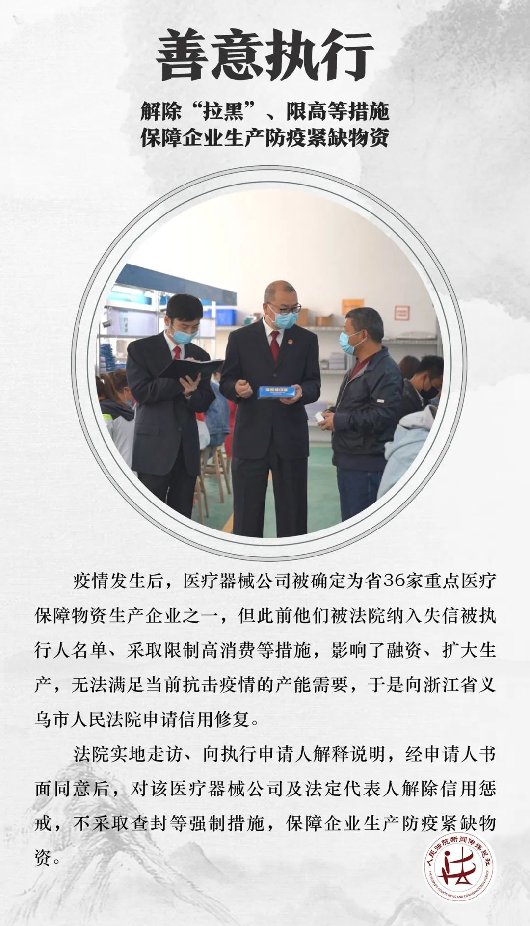 因疫情停产导致的买卖合同违约、金融借款逾期等纠纷保障企业复工,回应社会关切人民法院充分发挥审判职能作用