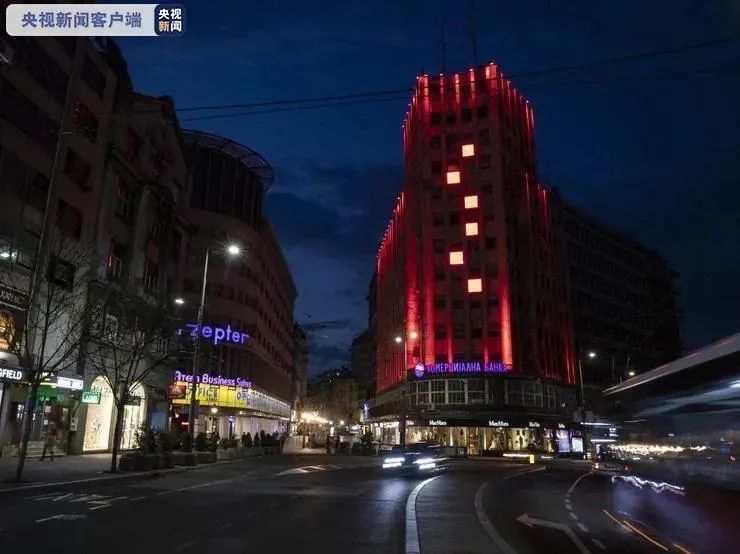 3月21日和22日晚,塞尔维亚首都贝尔格莱德市的国民议会大厦、阿尔巴尼亚大厦、布兰科夫大桥、阿达桥等标志性建筑,分别点亮了象征中国国旗的红色。