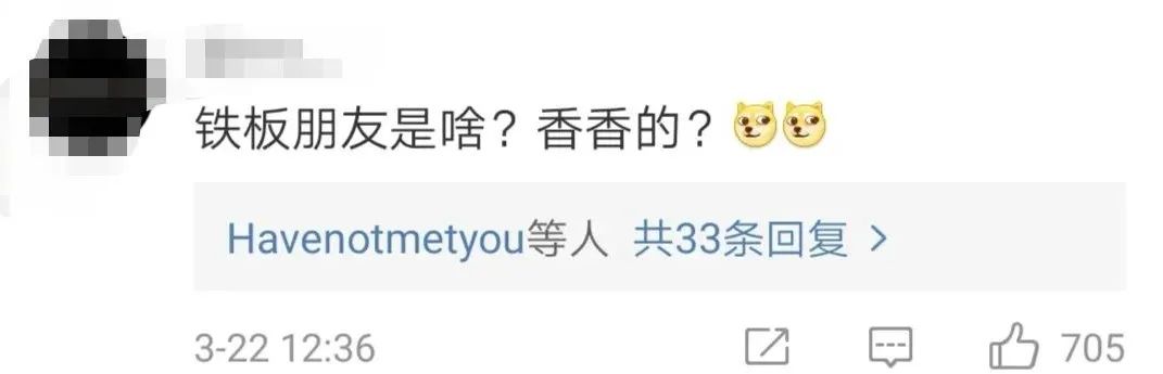 中国网友在感动的同时,也产生了同一个疑问:“铁板朋友”是啥?