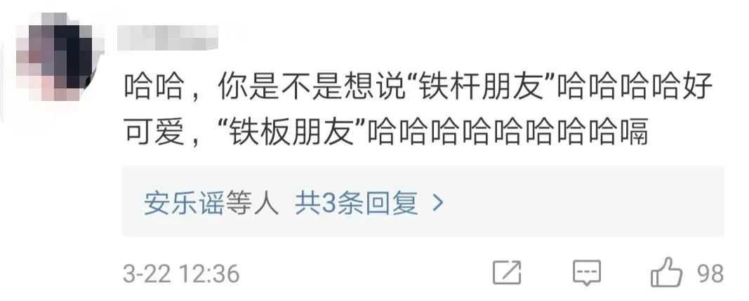 还有网友暖心表示,铁杆拼起来就是铁板,更加结实,因此说中塞是“铁板”友谊没毛病。