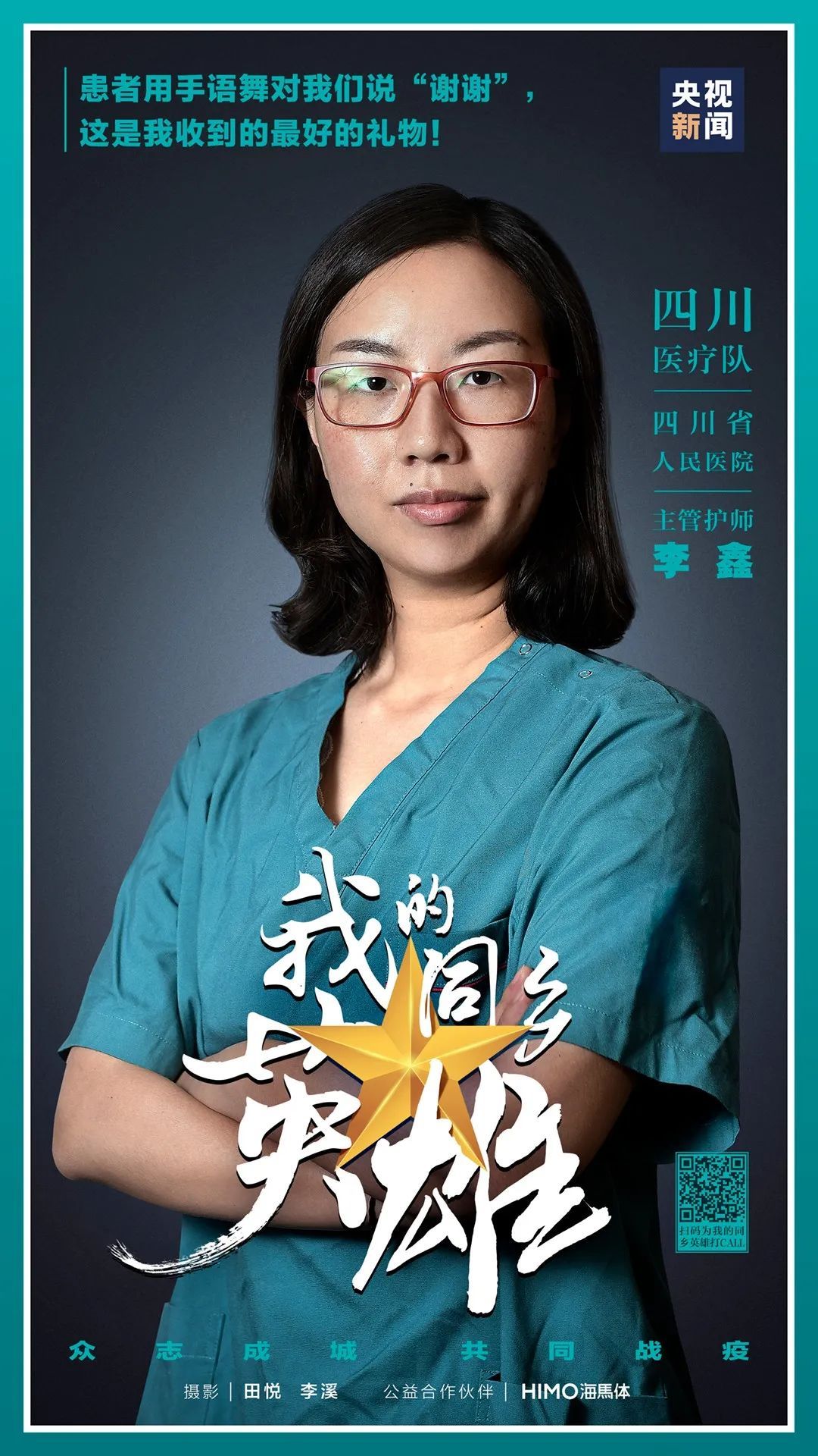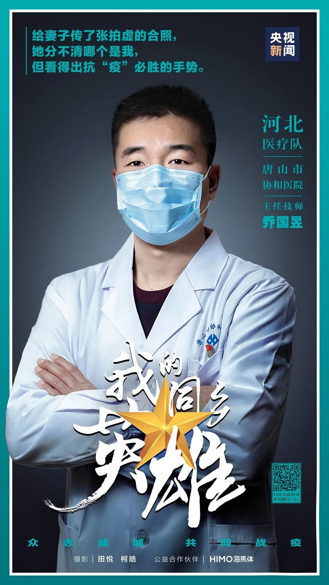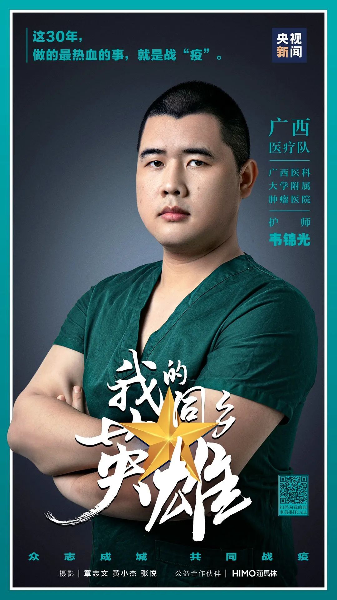“中国人总是被他们之中最勇敢的人保护得很好。”为了带大家看清最勇敢之人的模样,3月1日起,央视新闻新媒体推出#我的同乡英雄#活动,邀请全国各地援鄂医疗队的“大白”,脱下防护服,摘下护目镜,来到镜头前,央视新闻为他们拍下留念照,献上最高敬意。