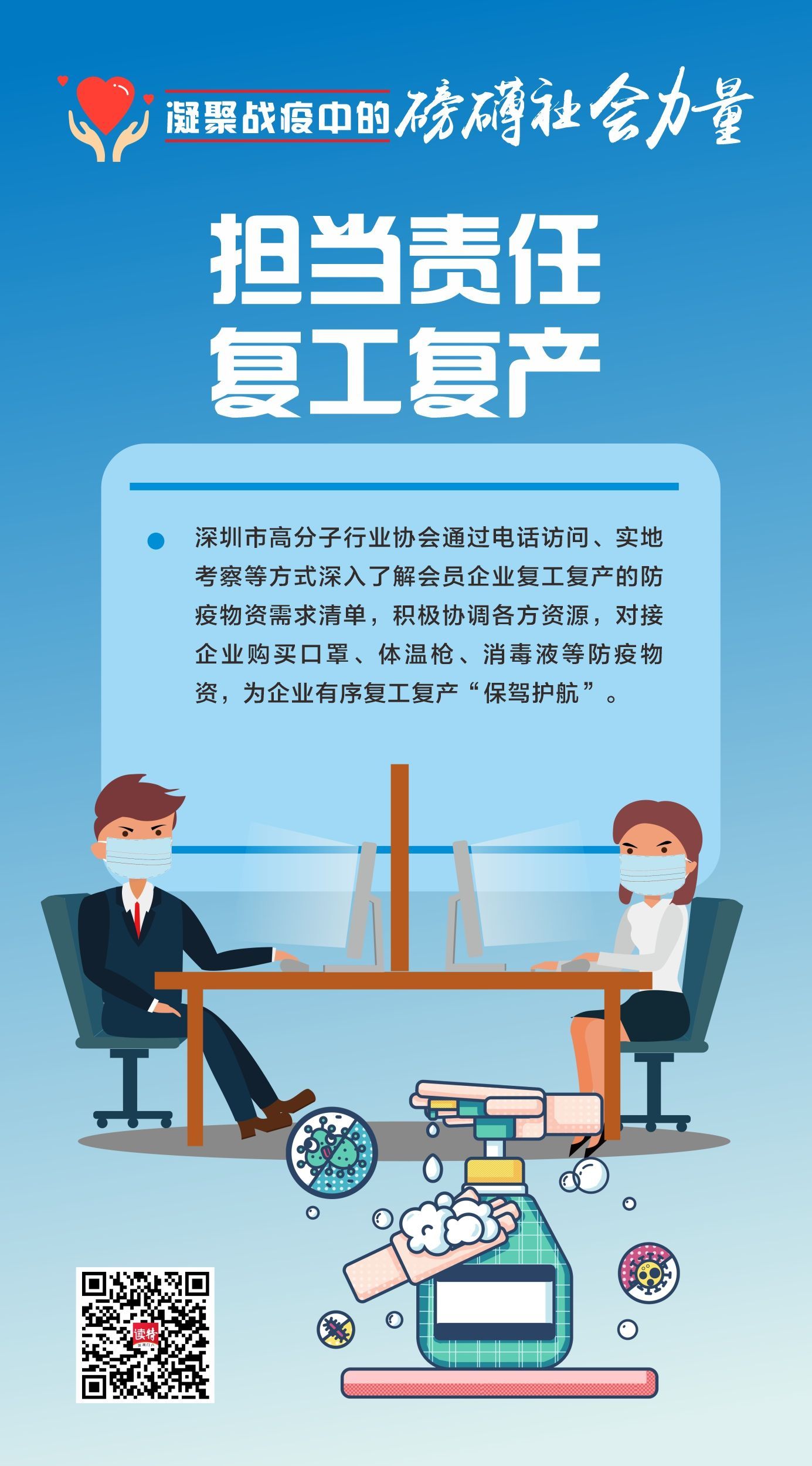 “不论哪种形式复工,我们都担责、会承责、要负责,让会员企业感受到组织的存在以及行业专业指导与服务。”深圳市高分子行业协会党委书记彭东吾说。