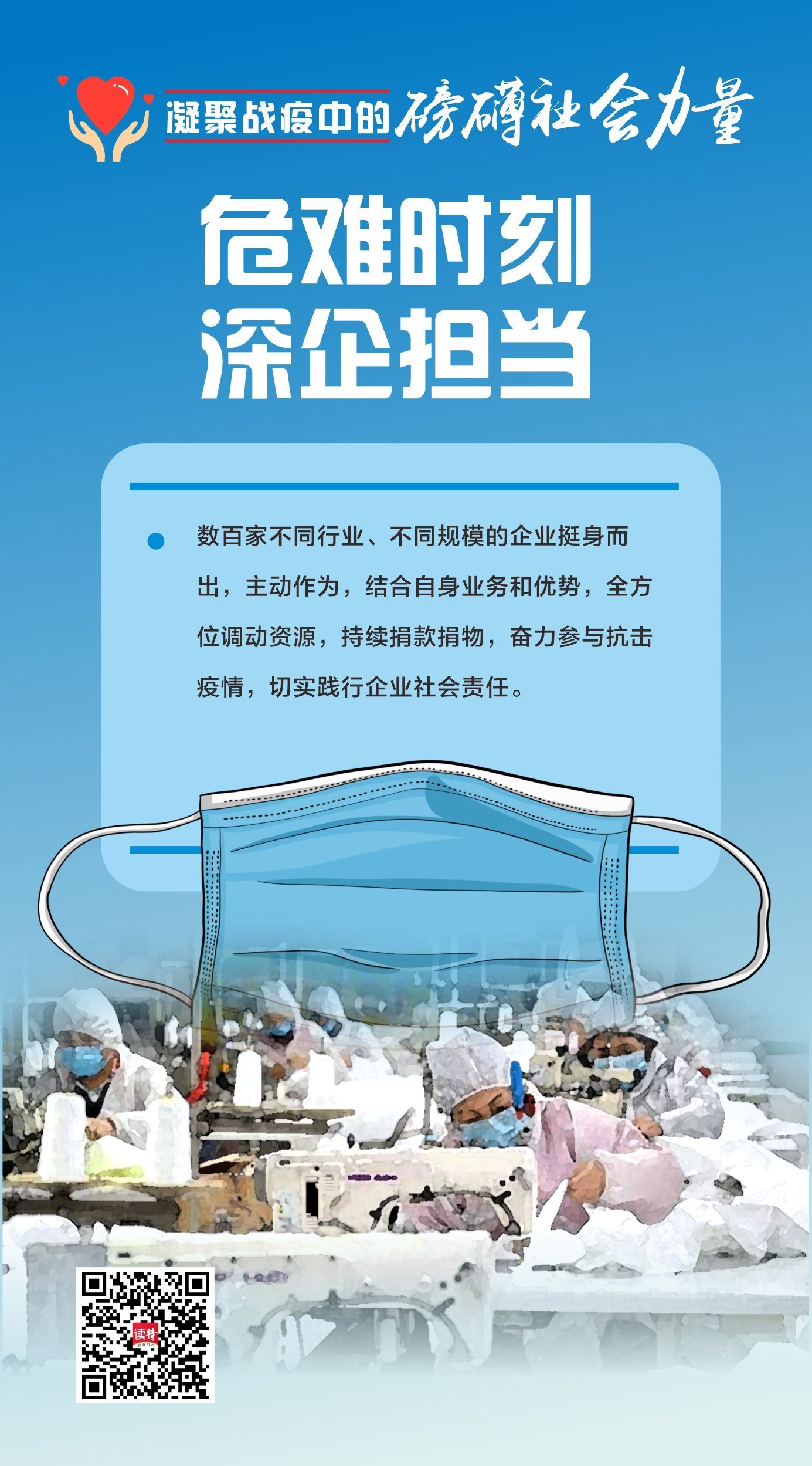 数百家不同行业、不同规模的企业挺身而出,主动作为,结合自身业务和优势,全方位调动资源,持续捐款捐物,奋力参与抗击疫情,切实践行企业社会责任。