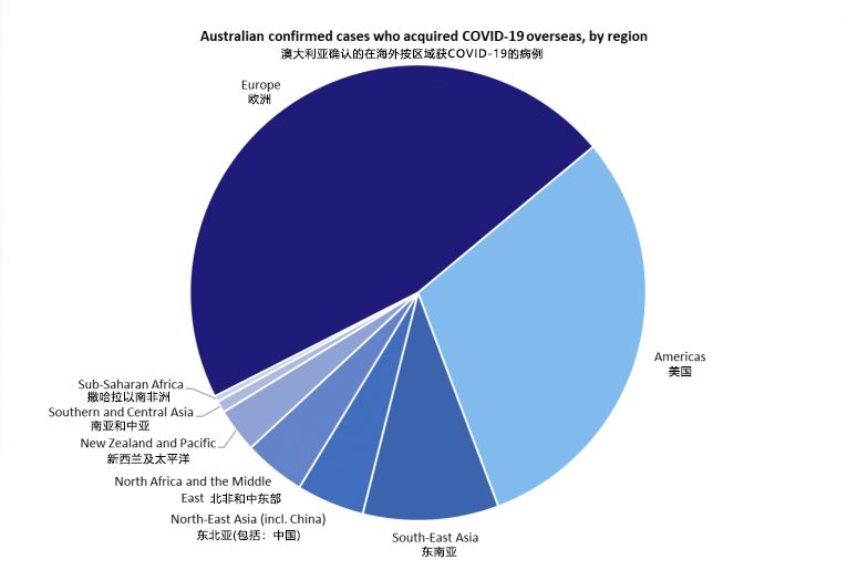 总台驻悉尼记者王聪给谭主发来了一张数据图,这是澳大利亚联邦卫生部对确诊的输入病例的分类统计,印证了澳总理的论断。
