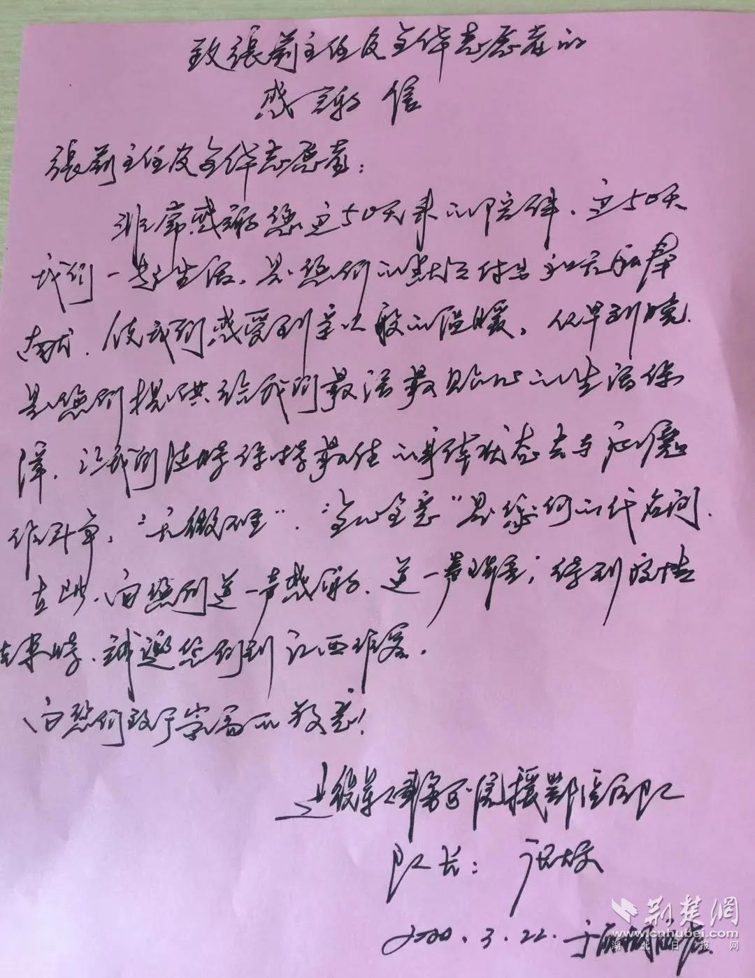 援鄂医疗队的感谢信。通讯员供图