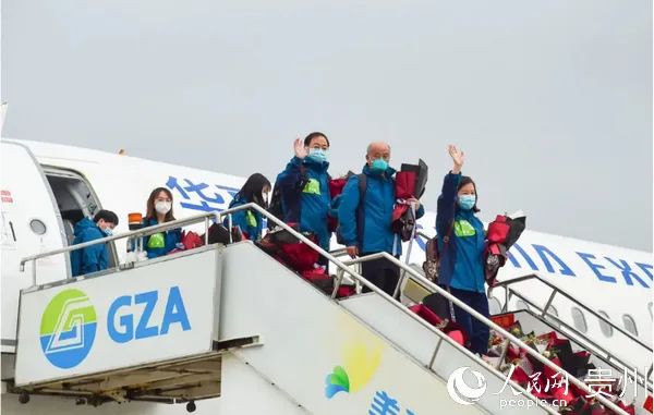 援鄂医疗队队员平安返程。贵州省卫健委供图