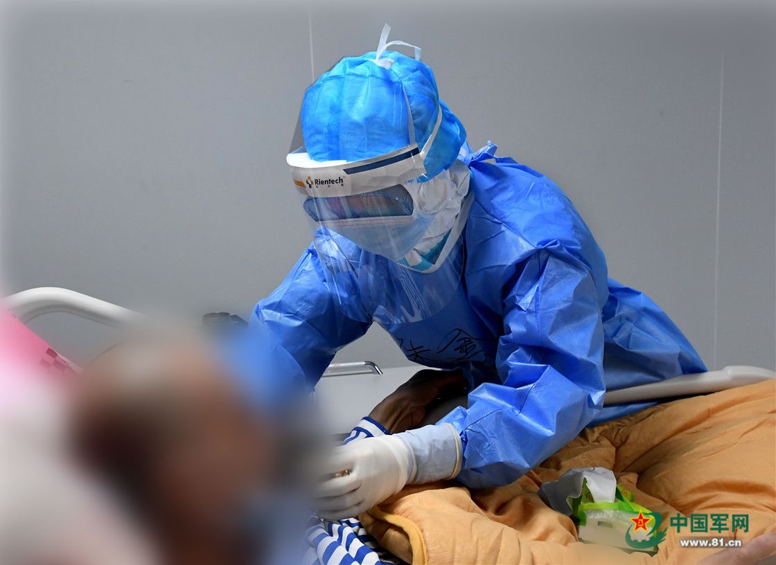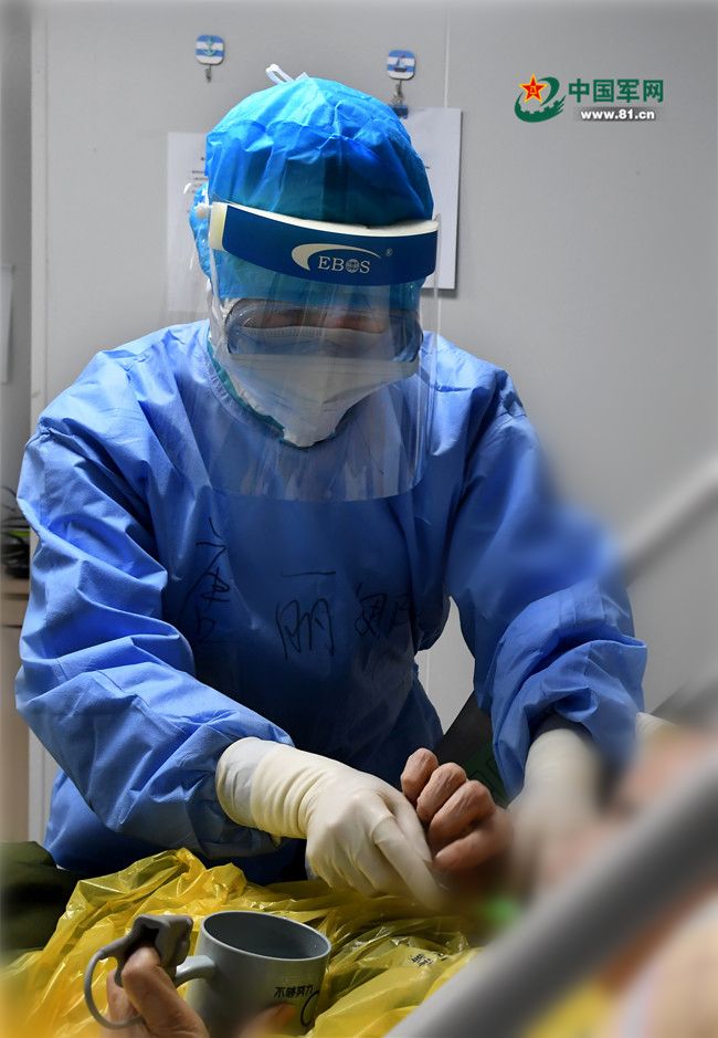 医护人员精心做好旁床护理护工作。解放军报记者 王传顺 摄