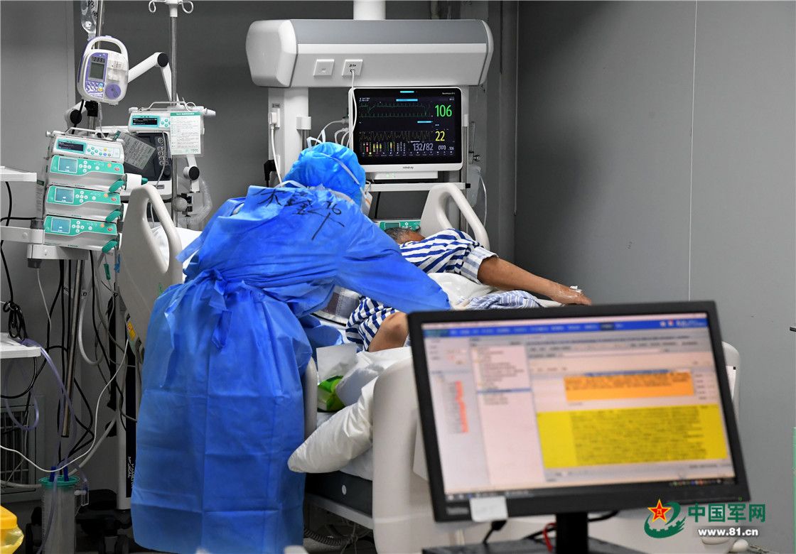 医护人员监控观察患者的病情变化。解放军报记者 王传顺 摄