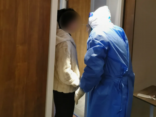 “您好,我们来为您采样。”张炳扬敲开了“客人”的房间,开始采集鼻咽拭子。“放轻松,稍微抬起来头,张开嘴,很快就好。”张炳扬语气温柔。