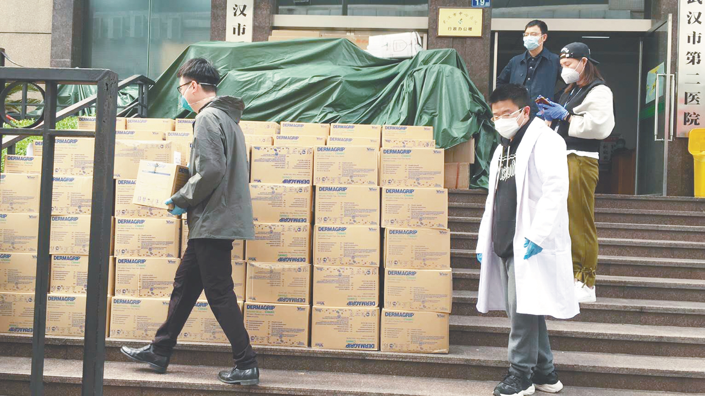 2月22日凌晨,来自马来西亚的捐赠物资在风雨交加中抵达武汉,次日即运抵武汉市中心医院。 (刘盈 供图)