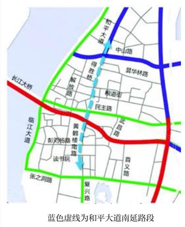 据了解,和平大道南延线与轨道交通5号线并线施工,规划为重要的城市主干道,北接和平大道、南连新武金堤路,主要承担南北向过境交通功能,沿线经过黄鹤楼风景区、司门口商圈、昙华林等老武昌城段,为避免对武昌古城的影响,拟采用隧道穿越,其中北端敞开段位于中山路以北,南端敞开段位于彭刘杨路以南。
